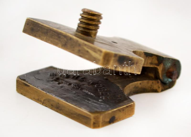 Régi bronz száraz-pecsétnyomó "Michel Josef korcsmáros" felirattal, nyél hiányzik, 5x4cm