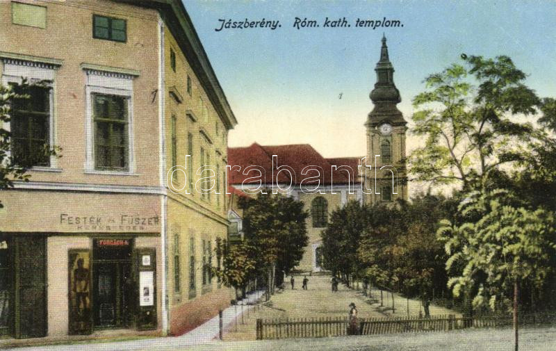Jászberény, Katolikus templom, Forgách A. festék- és fűszerkereskedés...