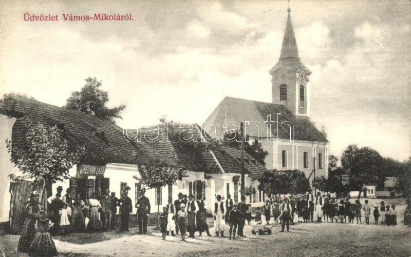 Vámosmikola, Templom tér, Groszman Lajos kereskedése; kiadja Groszman ...