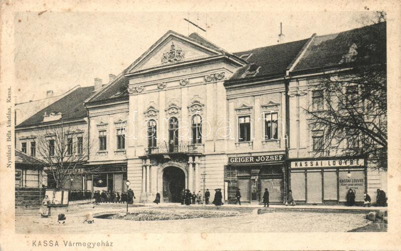 https://www.darabanth.com/en/257-Online-auction/257.0/Postcards/Slovakia~400011/Kassa-Kosice-varmegyehaz-Geiger-Jozsef-uzlete-Kassai-Louvre-divataruhaz-kiadja-Nyulaszi-~II1259144
