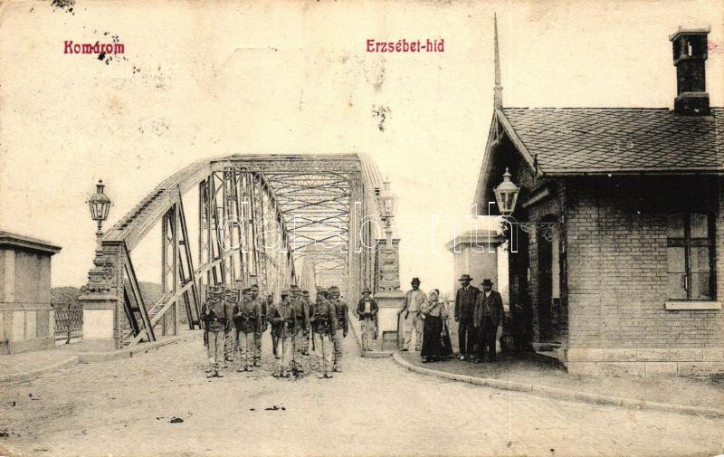 Komárom, Komárno; Erzsébet híd, Császári és Királyi hadsereg katonái / bridge, soldiers of the Austrian-Hungarian military (EB)