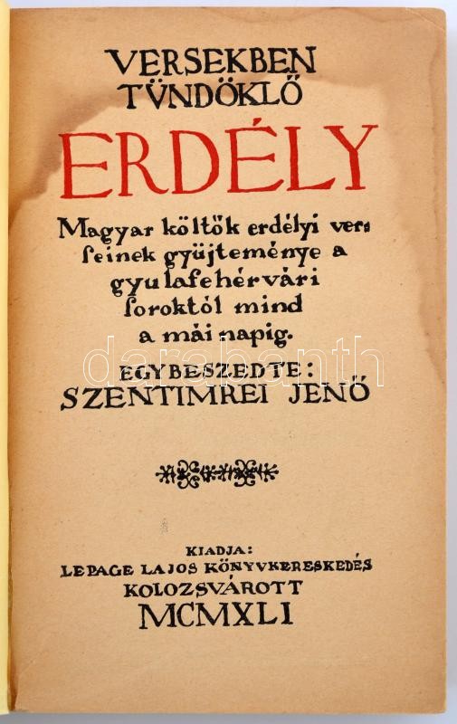 Versekben tündöklő Erdély. Magyar költők erdélyi verseinek gyűjteménye... https://www.darabanth.com/en/258-Online-auction/258.0/Books/Books-Other-rarities~39/Versekben-tundoklo-Erdely-Magyar-koltok-erdelyi-verseinek-gyujtemenye-a-gyulafehervari-s~II1267711