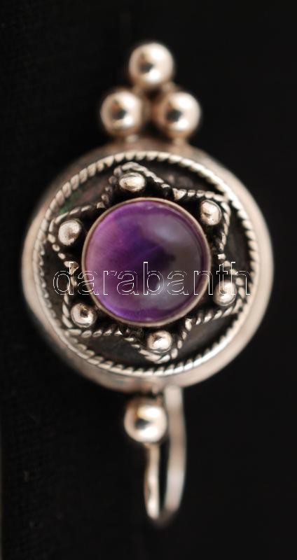 Ametiszttel díszített ezüst(Ag) fülbevaló, jelzett, br: 12,5 g