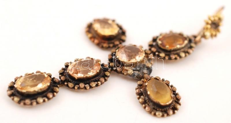 Arany 14K (Au.) kereszt medál, csiszolt citrin kövekkel, javított, jelzés nélkül, bruttó: 4,9 g