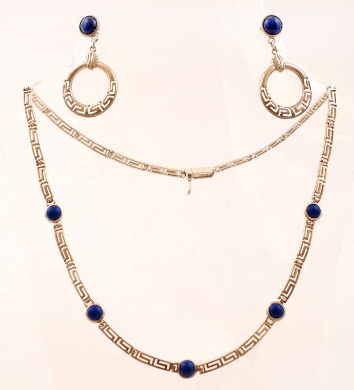 Ezsüst(Ag) nyaklánc fülbevalóval, jelzett, h: 45 cm, br: 26,6 g