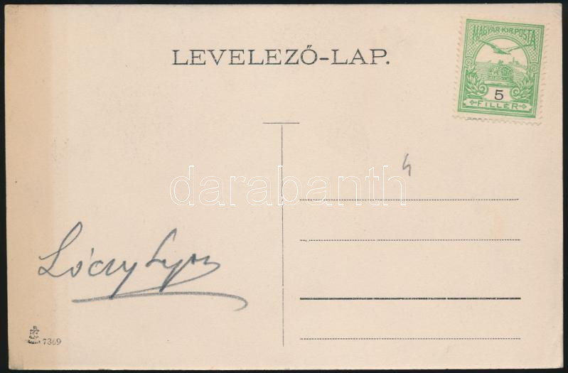 Description: Lóczy Lajos (1849-1920) magyar geológus, geográfus, egyetemi tanár, az Magyar Tudományos Akadémia tagjának aláírása (Bihorfüred-Szerenádesés) képeslapon, 9x13cm