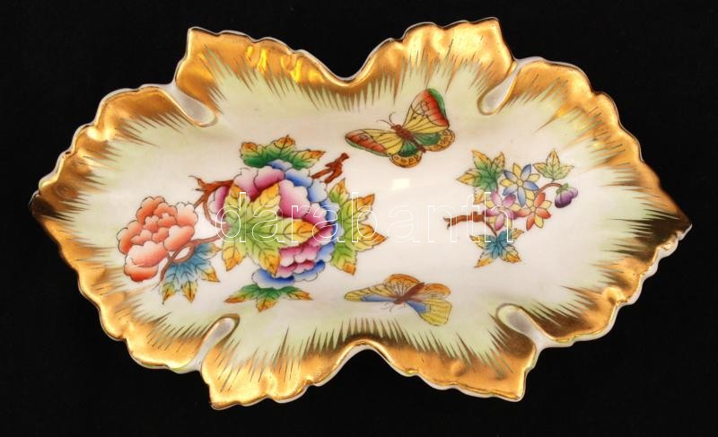 Herendi Viktória mintás leveles tálka, kézzel festett, jelzett, hibátl...