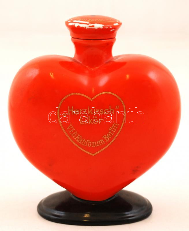 Ilemenau szív alakú porcelán palack, kopottas, jelzett, 16cm
