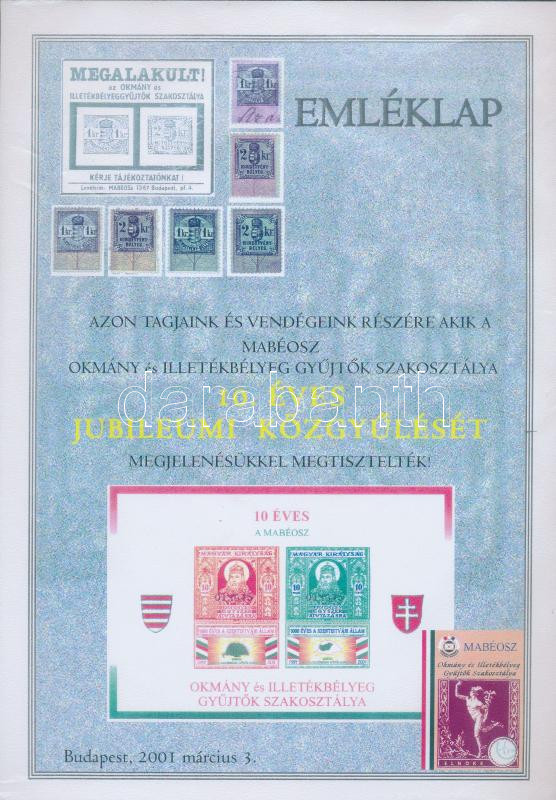 https://www.darabanth.com/en/258-Online-auction/258.0/Other-collectibles/Document-Stamps~43/2001-Emleklap-az-Okmanybelyeggyujtok-10-eves-Kozgyuleserol-szignoval~II1271404