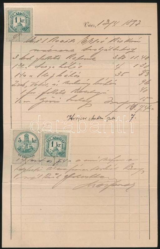 1892 Vác, Meiszner Rudolf Rőfös-, Divat- és Rövidáruk Kereskedésének díszes számlája 5+2x1 kr okmánybélyeggel