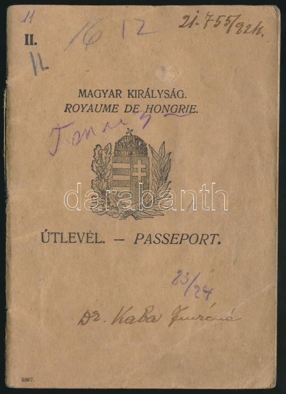 https://www.darabanth.com/en/258-Online-auction/258.0/Other-collectibles/Documents~15/1924-Fenykepes-utlevel-dr-Kaba-Imrene-reszere-szamos-kulfoldi-illetekbelyeggel-pecsC3~II1266297