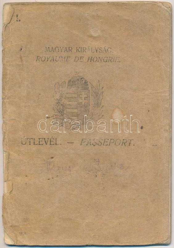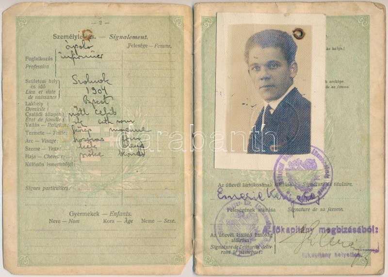 https://www.darabanth.com/en/258-Online-auction/258.0/Other-collectibles/Documents~15/1927-Fenykepes-utlevel-Kenyeres-Imre-reszere-kulfoldi-illetekbelyeggel-pecsettel-Fedla~II1266307