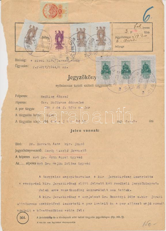 https://www.darabanth.com/en/258-Online-auction/258.0/Other-collectibles/Documents~15/1944-50-Marhalevel-2dbplus-a-zirci-birosag-jegyzokonyve-2db-klf-okmanybelyegeekkel~II1267982