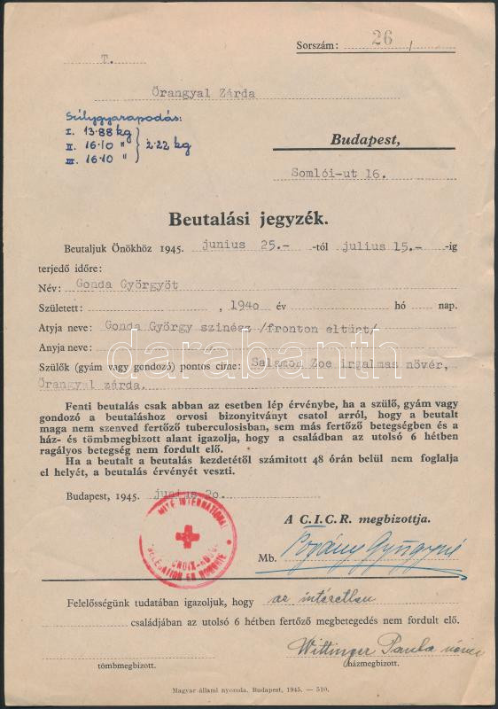 https://www.darabanth.com/en/258-Online-auction/258.0/Other-collectibles/Documents~15/1945-Bp-A-Nemzetkozi-Voroskereszt-beutalasi-jegyzeke-gyermek-szamara-az-Orangyal-Zardaba~II1270134