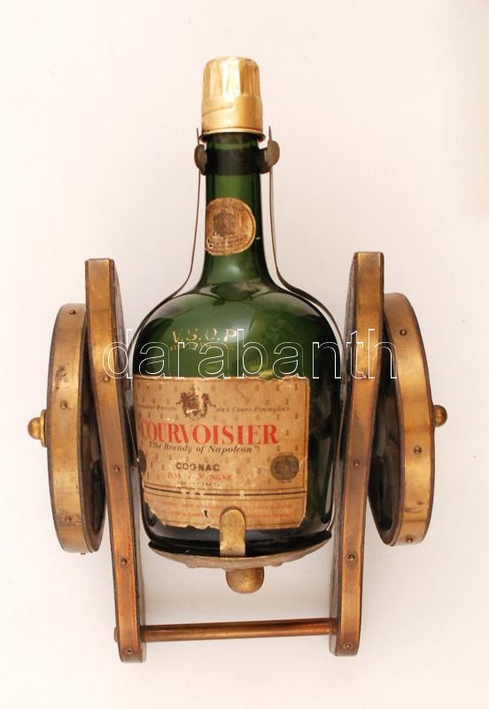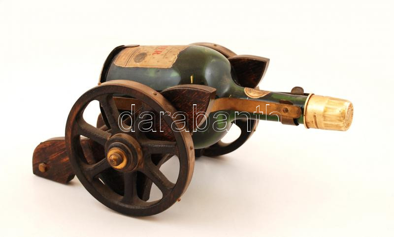 Ágyús palack tartó, fa réz veretekkel, 18×29 cm