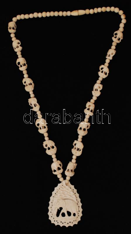 Elefántos motívummal díszített csont nyaklánc, h: 46 cm