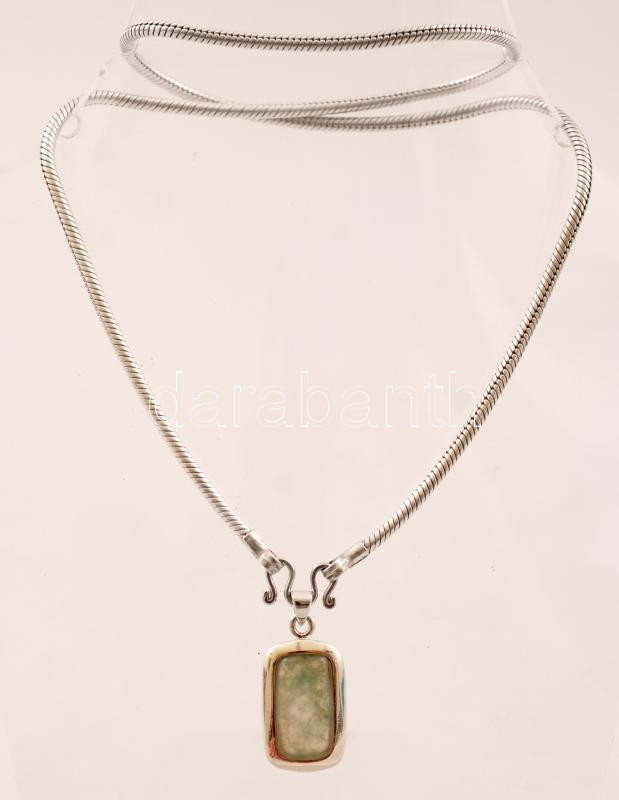 Fém nyaklánc mutatós zöld medállal, h: 50 cm