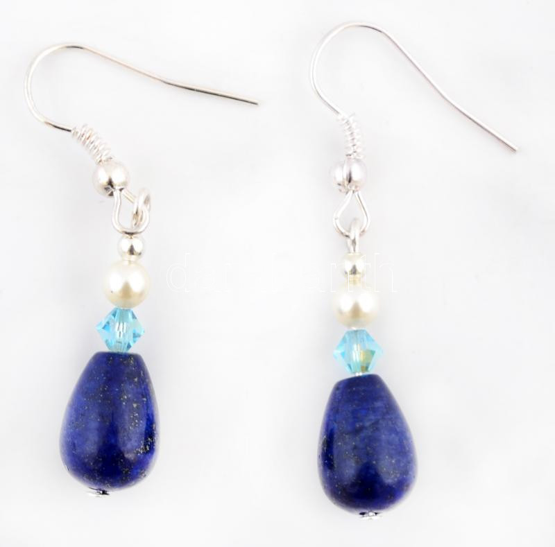 Fülbevalópár lápisz-lazuli és gyöngy díszítéssel