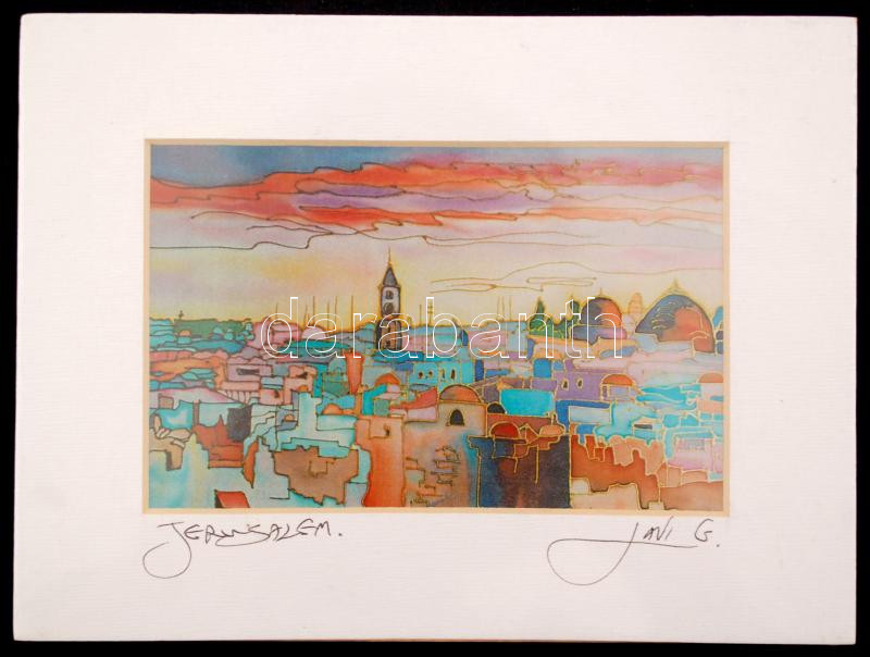 Jeruzsálem szignált izraeli nyomat paszpartuban / Jerusalem print with autograph sign 20x15 cm