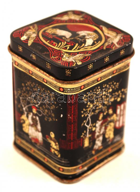 Kínai teás doboz, fém, kissé horpadt, 6x4x4cm