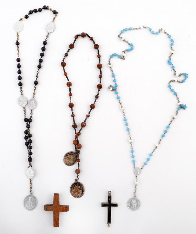 Vegyes, apró kegytárgy tétel, feszületek, rózsafüzérek, 5db