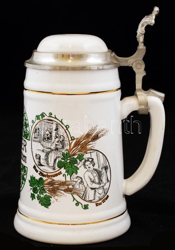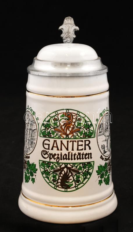 WW-Team Ganter porcelán korsó ón tetővel, apró lepattanással, m:20 cm