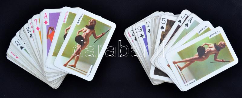 cca 1960 Erotikus francia kártya pakli, 2×54 lapos, egyikből hiányzik ...