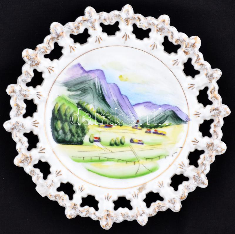 Novex falitányér, porcelán, kézzel festett, jelzett, lepattanással, d:20cm