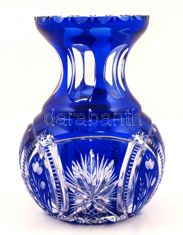 Ólomkristály váza, több rétegű, csiszolt, hibátlan, m:18 cm