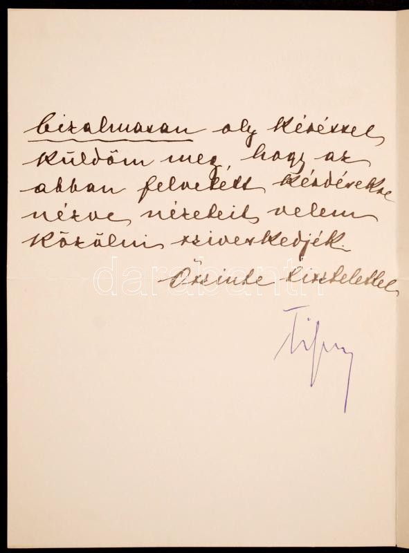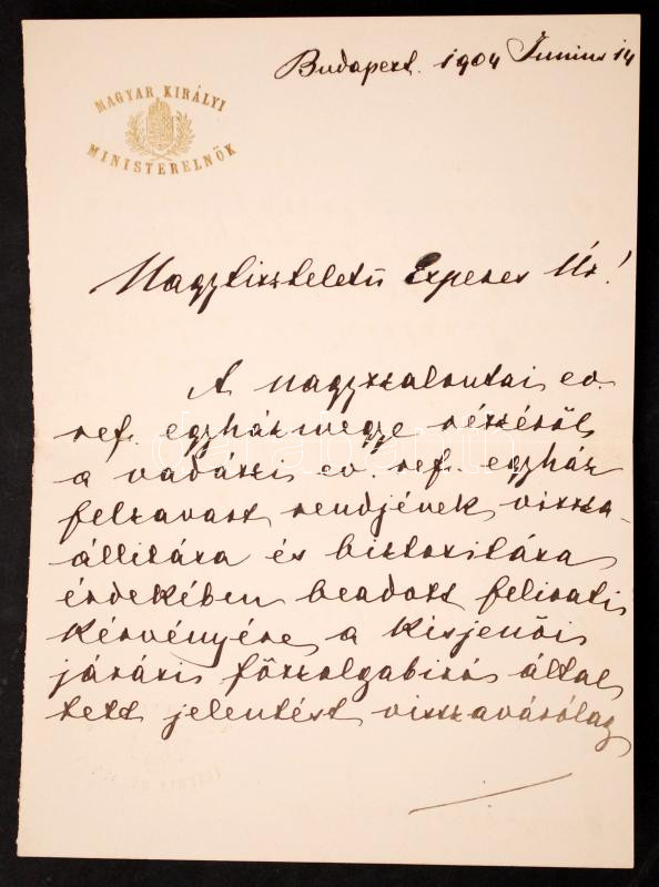 1904 gr. Tisza István miniszterelnök saját kézzel írt levele a nagyszalontai esperesnek egyházi ügyben