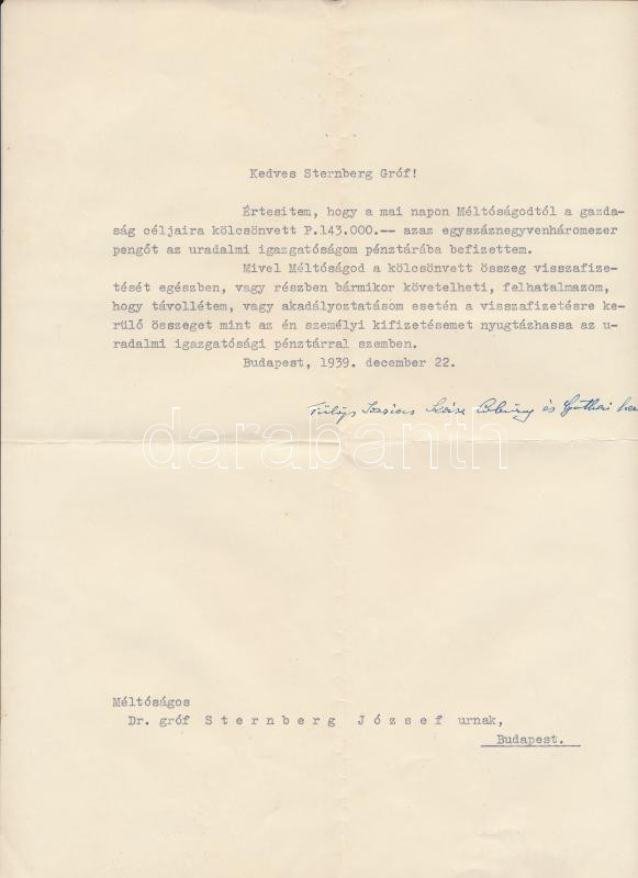 https://www.darabanth.com/en/258-Online-auction/258.0/Other-collectibles/Historical-documents-manuscripts~16/1939-Rajner-Fulop-herceg-sajat-kezzel-alairt-levele-Sternberg-grofnak-Autograph-letter-of-P~II1272079