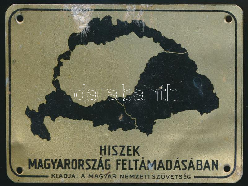 cca 1925 Magyar nemzeti szövetség, irredenta fémtábla 9x6cm