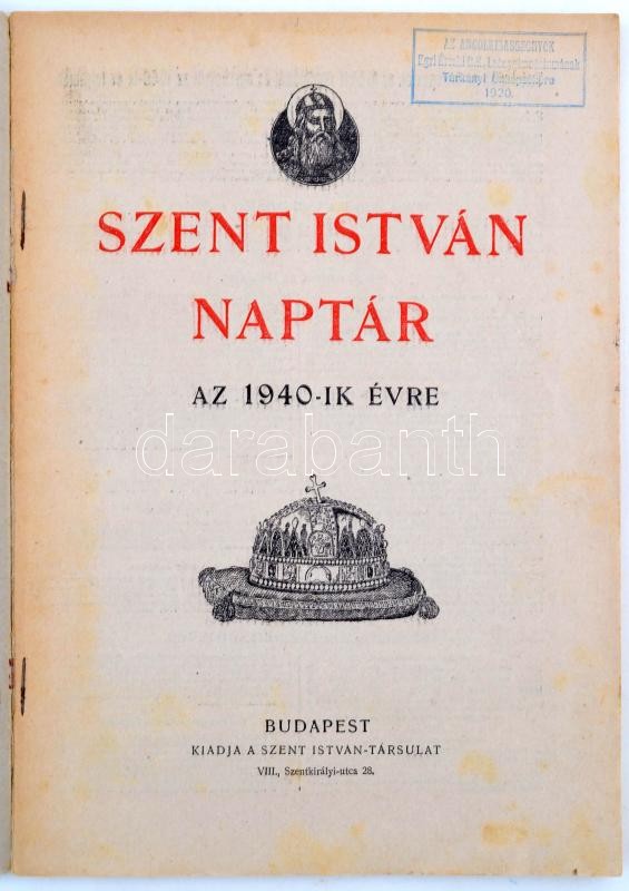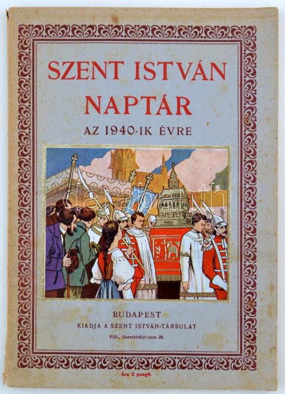 https://www.darabanth.com/en/258-Online-auction/258.0/Other-collectibles/Printed-Materials~26/Szent-Istvan-Naptar-az-1940-evre-Kiadoi-diszes-papirkotesben-A-gerince-enyhen-serult~II1236814