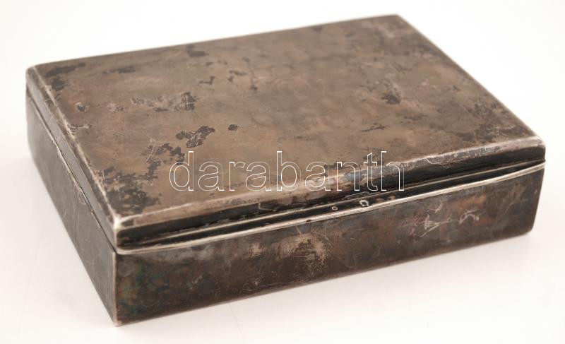 Ezüst (Ag.) cigarettás doboz, jelzett, piszkos, bruttó:210g, 12,5×9 c...