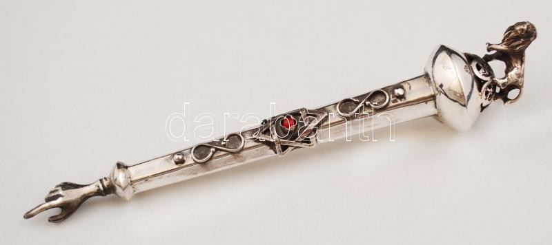 Ezüst (Ag) oroszlán figurás tóramutató, jelzett, bruttó:21 g, h:14,5 c...