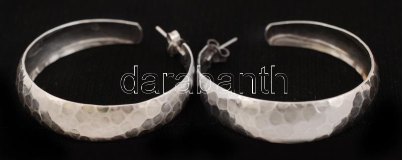 Ezüst karika-fülbevaló, Ag, nettó: 15,7gr., jelzett, d:4cm /Silver hoop earrings, Ag, net.: 15,7gr, marked, d: 4cm