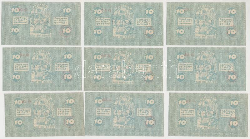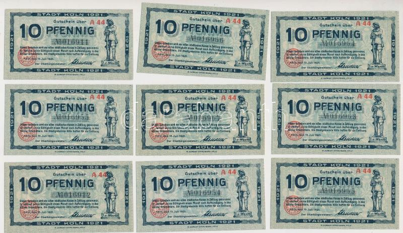Németország / Weimari Köztársaság / Köln 1921. 10pf (9x) 5db és 2x2db sorszámkövető T:I,I- kis sarokkopások