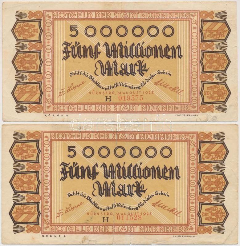 Németország / Weimari Köztársaság / Nürnberg 1923. 5.000.000M (5x) T:v...