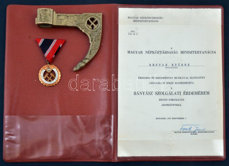 1973. "Bányász Szolgálati Érdemérem bronz fokozata" kitüntetés mellszalaggal, adományozói okirattal, valamint egy bányászfokossal T:2