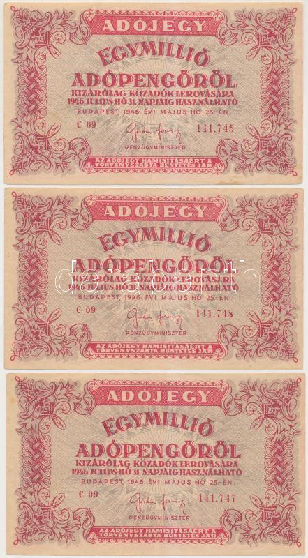 1946. 1.000.000AP (3x) sorszámkövetők és egyugrású sorszámmal T:II-,II...