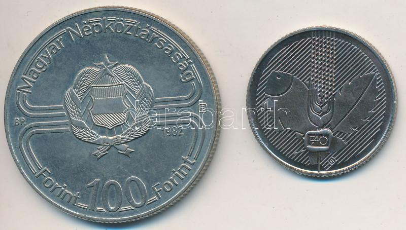 1982. 100Ft Cu-Ni "Labdarúgó VB 1982" + 1985. 20Ft "FAO" T:2,1