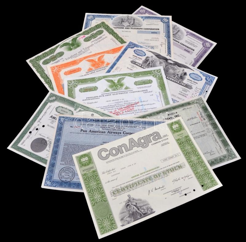 Description: Amerikai Egyesült Államok 1947-1977. 10db klf részvény perforált, bélyegzésekkel, lyukasztással érvénytelenítve T:I-III