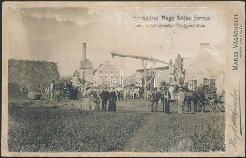 Mezőeörsi Nagy Lajos farmja, Maros-Vásárhelyt, keményhátú fotó Hajdú Sándor műterméből, kopásnyomokkal, 11x17cm