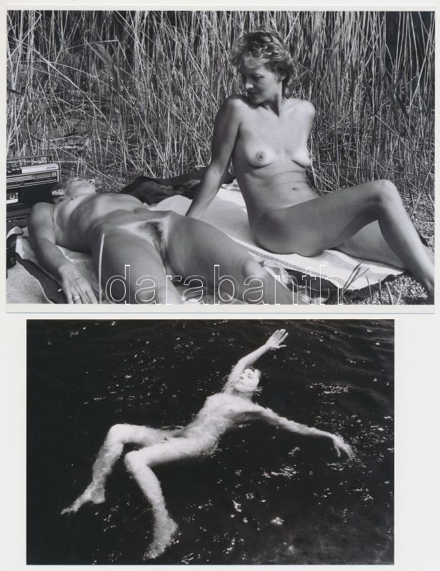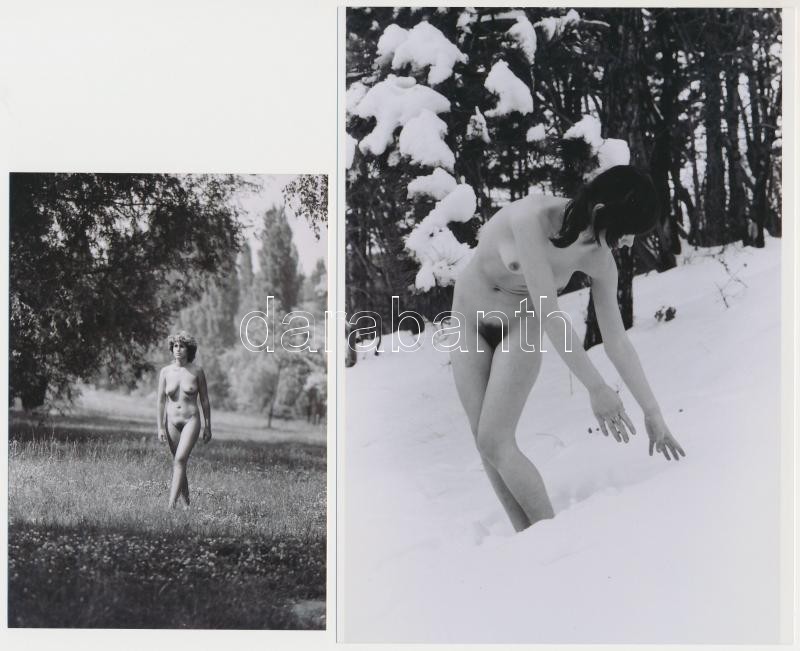 Description: cca 1975 Télen-nyáron, vízben-hóban, 4 db korabeli negatívról készült modern nagyítás, finoman erotikus fényképek, 18x13 cm és 9x13 cm közötti méretekben / 4 erotic photos, 9x13-18x13 cm