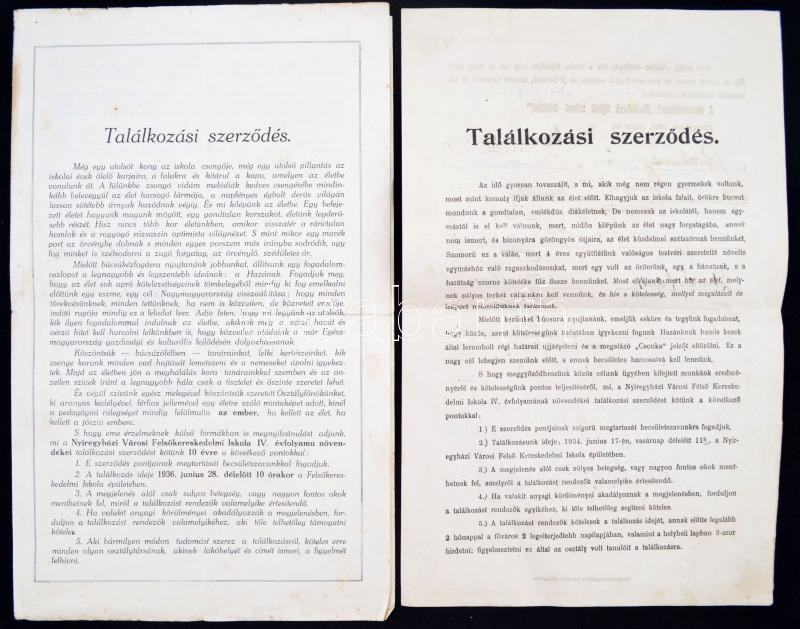 1924-26 Találkozási szerződés, Nyíregyházi Városi Felső Kereskedelmi Iskola, 2db, pp.:3, 33x21cm