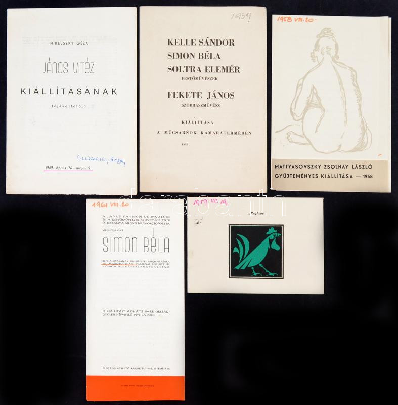 1958-1961 Érdekes művészeti kiállítások meghívói(Nikelszky Géza, Mattyasovszky Zsolnay László, stb.), 5 db