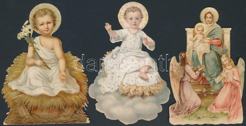 cca 1920-30 Régi szentképes matricák, különböző méretben és minőségben, 3db, cca 10x6cm