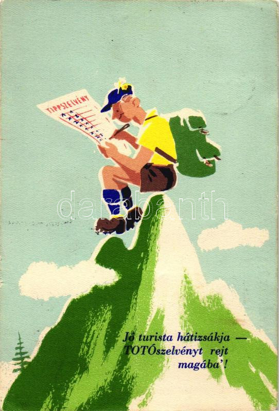 1954 'Jó turista hátizsákja TOTÓ szelvényt rejt magába'!', Totó reklám / Hungarian Football pool advertisment (EK)