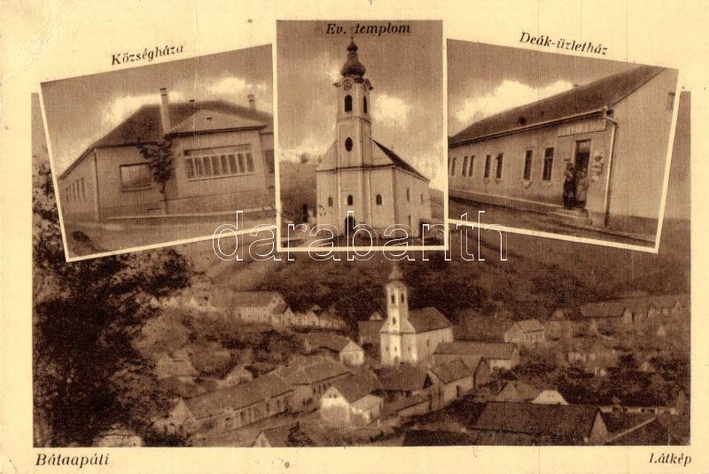 Bátaapáti, Községháza, Evangélikus templom, Deák üzletház, kiadja a Ho...