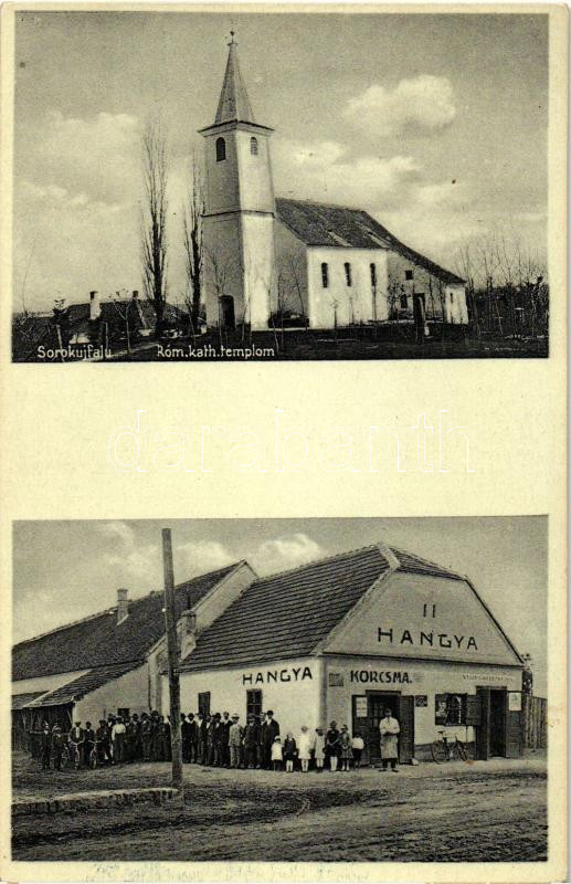 Sorokujfalu-Sorokpolány, Római Katolikus templom, a Hangya Fogyasztási Szövetkezet üzlete és korcsmája, kiadja a Hangya
